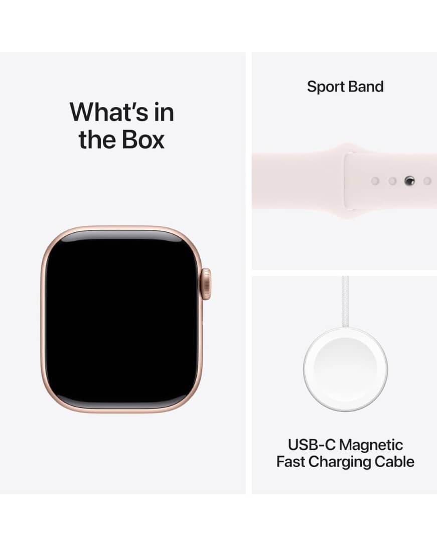 Apple Watch Series 10 GPS 42mm Rose Gold Aluminum with Light Blush Sport Band (Light Blush Strap, Free Size)