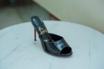 Pure black high heels with glossy look.