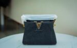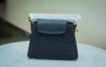 Famous Louis Vuitton leather collection bag in black with black diamonds all over it.