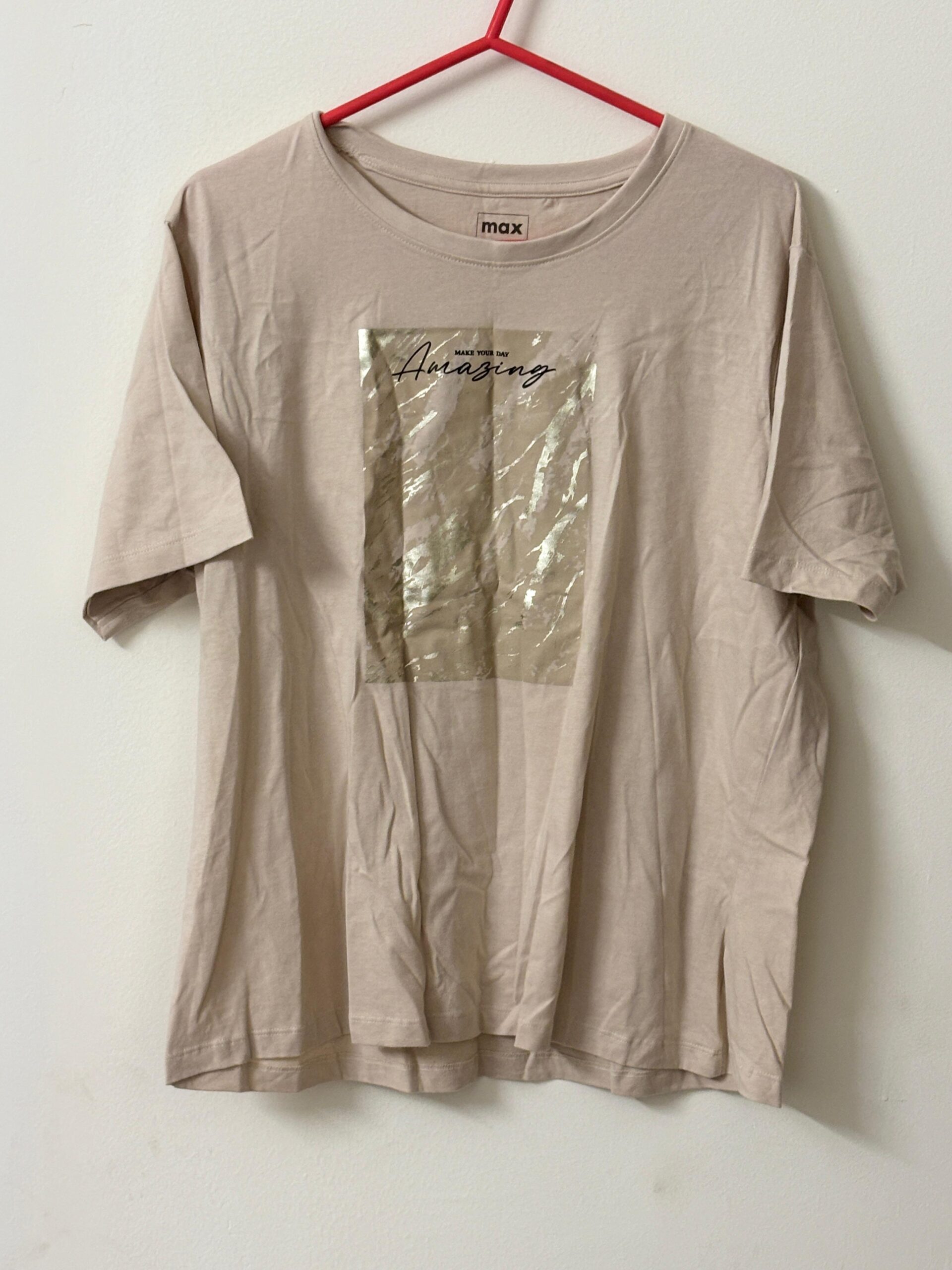 Max brand beige color quoted T- shirt, 100% cotton.