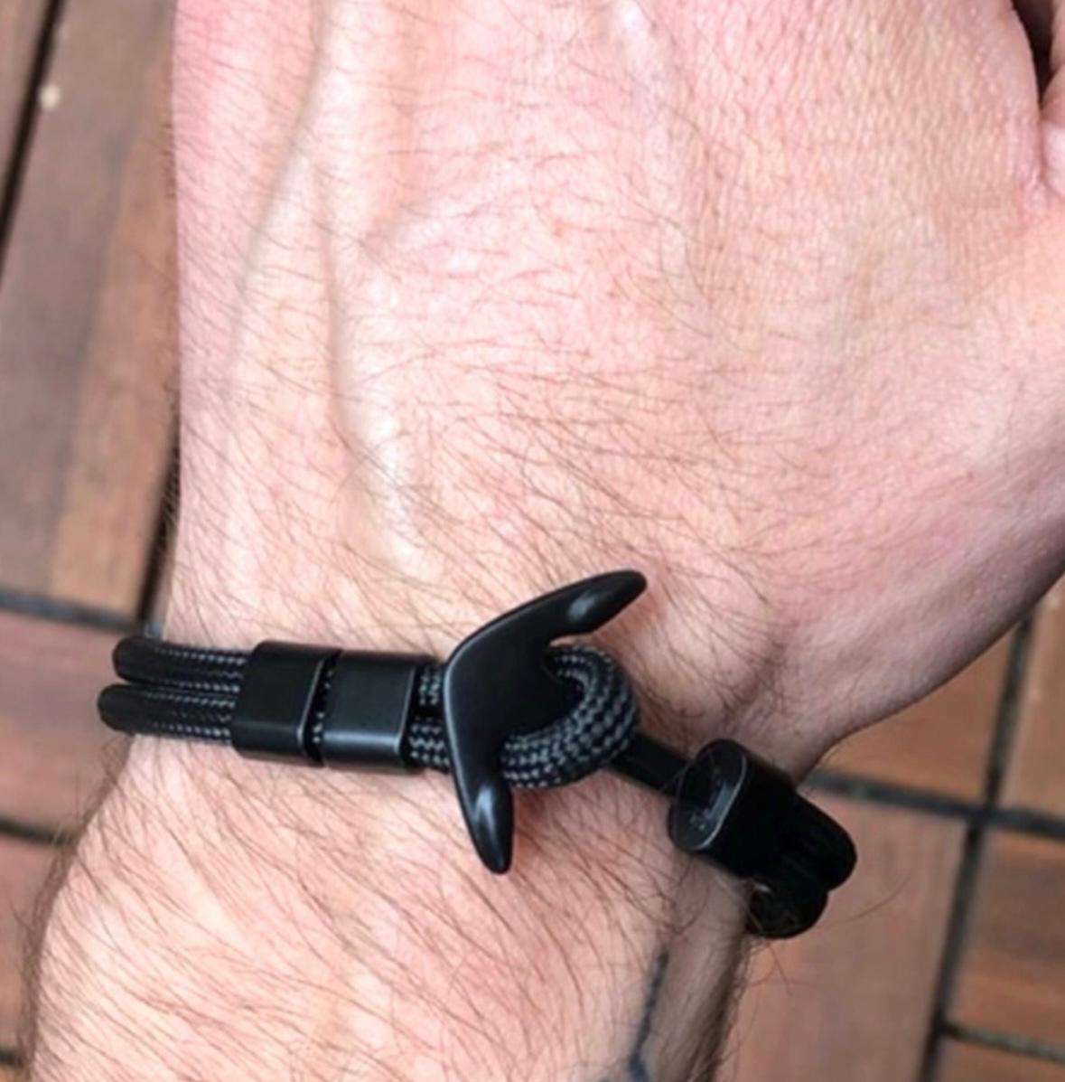 Trendz – Fashion Black Adjustable Anchor Wrist Band Bracelet