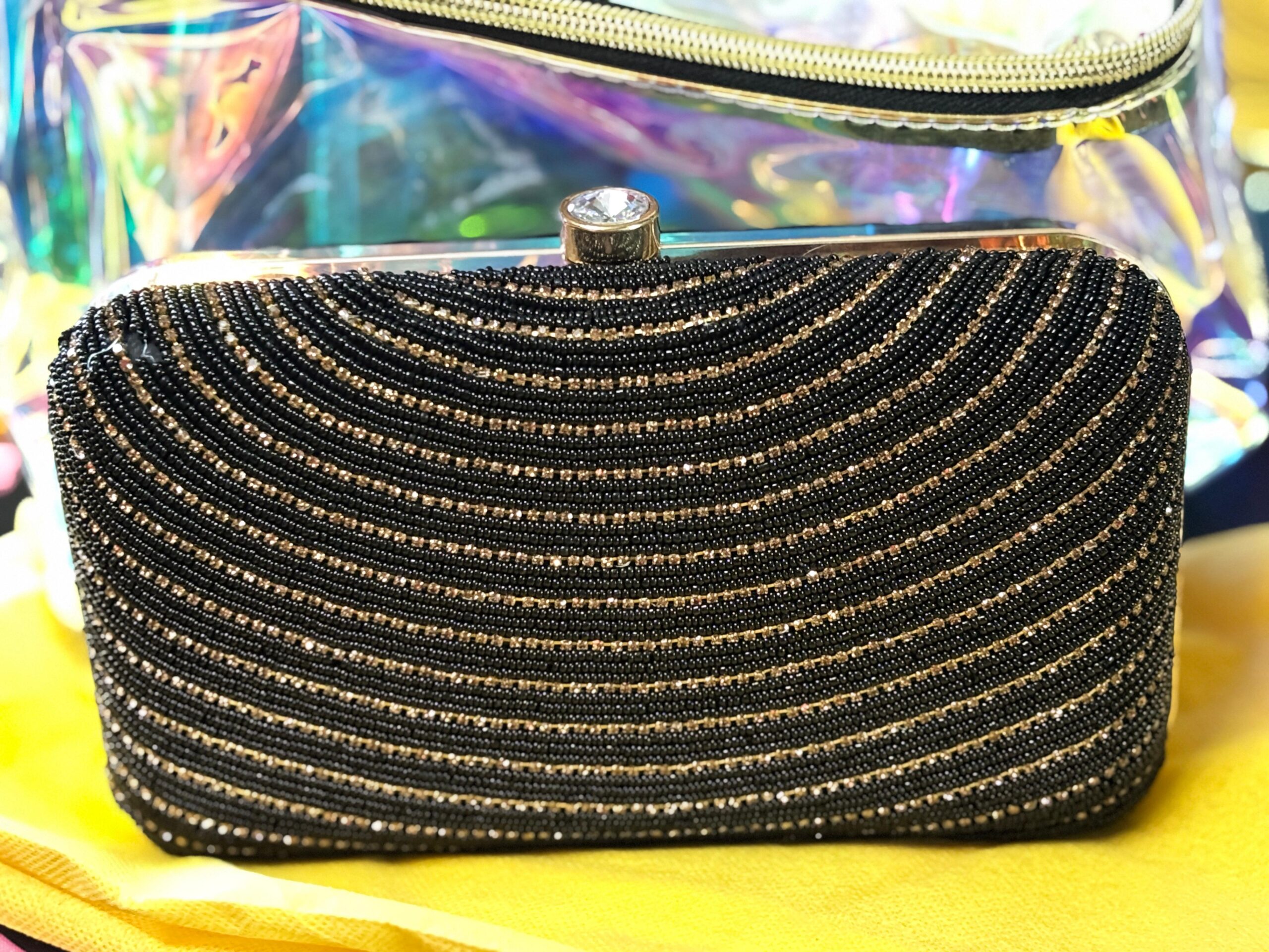 Women’s Clutch Black Beads and Brown Diamond Studded