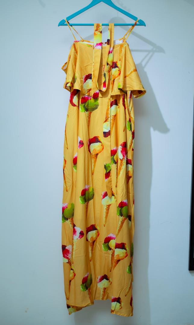 Yellow Flower Printed Off Shoulder Dress