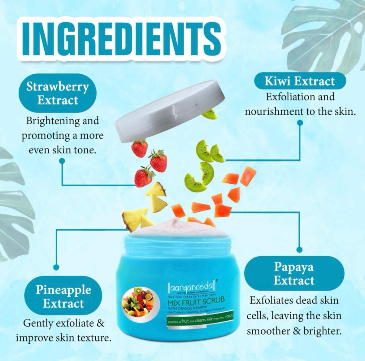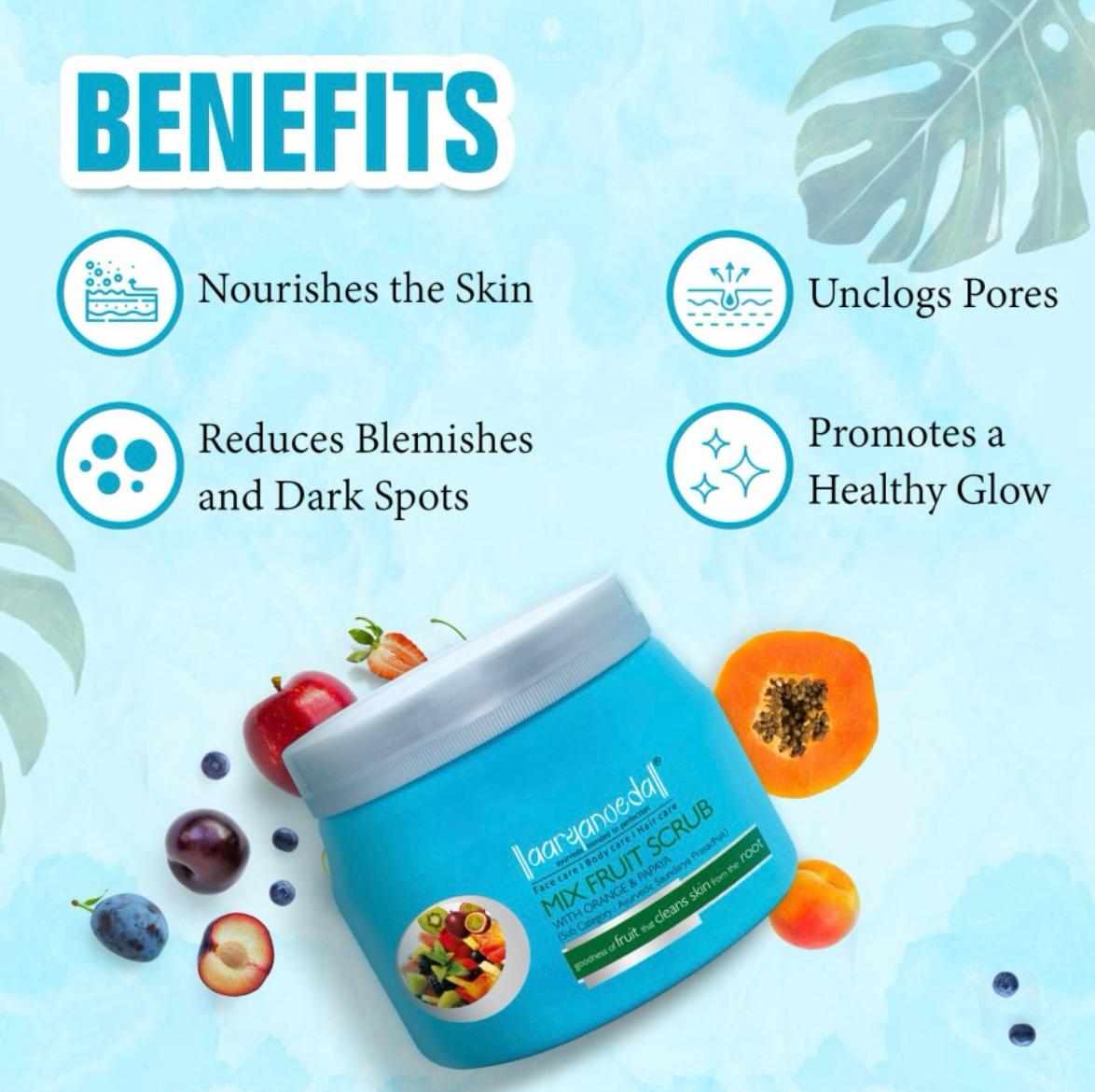 Aaryanveda Mix Fruit Face Scrub For Exfoliates Gently With Real Fruit, Removes Dead Skin Scrub