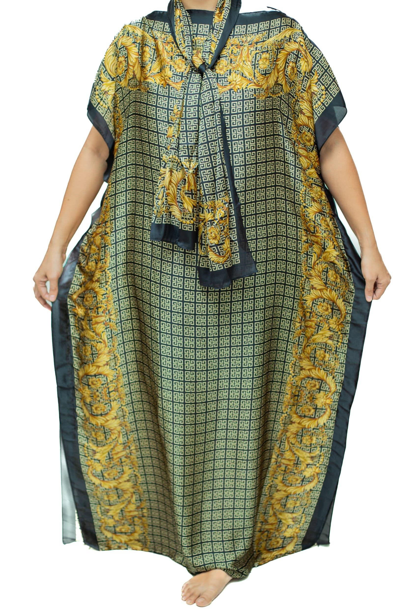 - Embrace regal allure in our Dubai-inspired Emirati Elegance Kaftan, adorned with a Versace print and a rich palette of colors, including black, golden yellow, cream, and more.