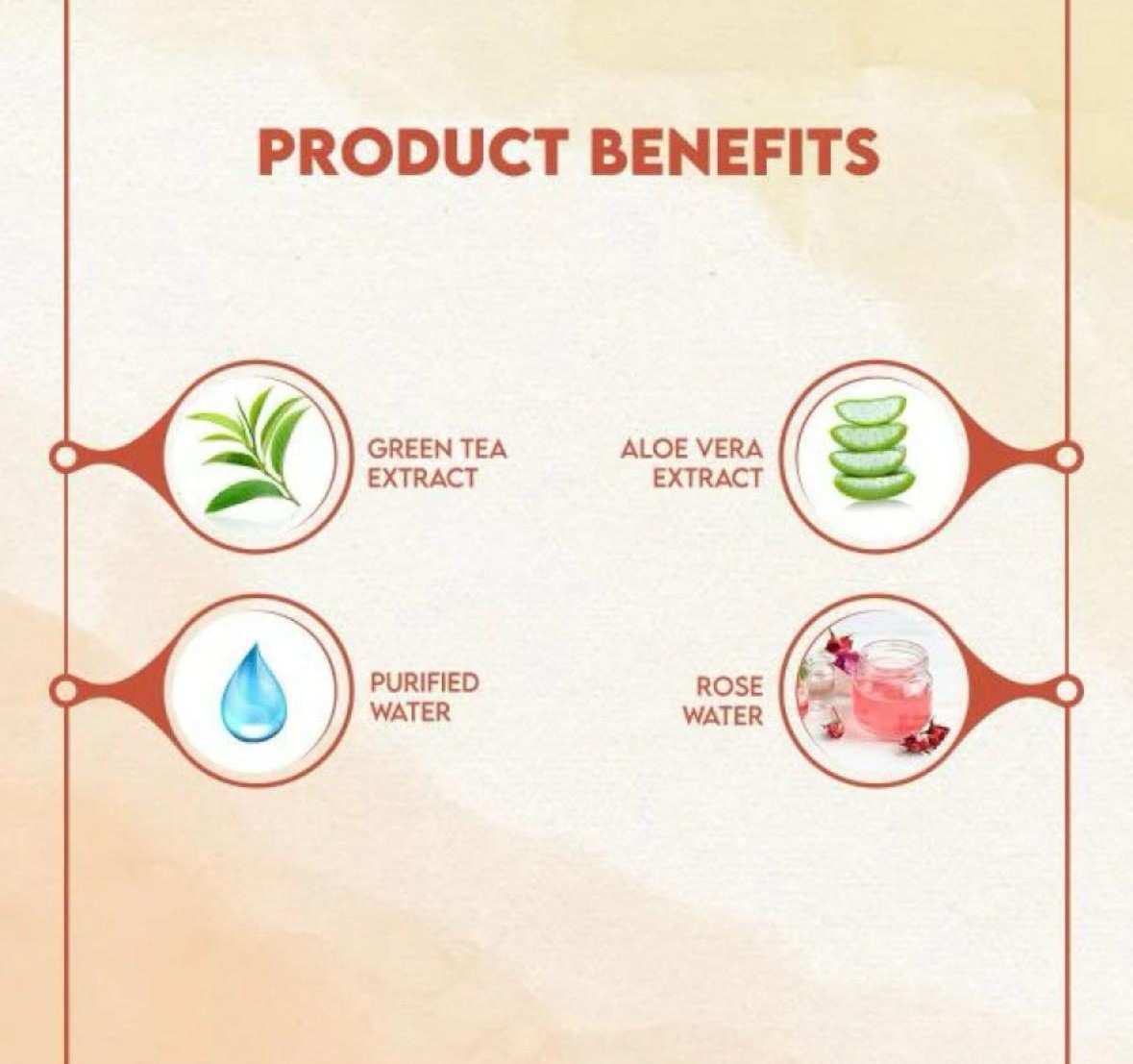 Jovees Green Tea toner is an all-round skin toner that provides valuable nutrients to your skin and helps mitigate and prevent acne. Rich in Vitamin B3 and B5, this toner helps prevent signs of premature ageing, effectively increases collagen production and helps retain the structure and elasticity of the skin. This keeps your face firm and healthy. It also helps reduce inflammation, deep cleanses your pores and leaves your skin glowing and radiant. Anti-inflammatory, Refreshing, Brightening, Reparative, Protective, Cleansing, Detoxifying, Refining, Antioxidant, Clarifying, & Hydrating. Helps soothe sunburn, Helps to moisturize the skin.