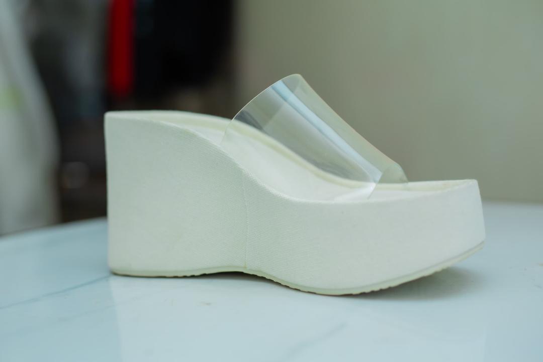 Sharing an exclusive wedge in white shade with the transparent upper covering.