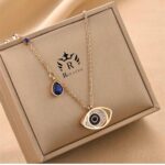 - A delicate evil eye pendant necklace, perfect for gifting or personal wear.