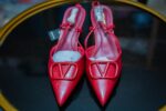 Patent leather high heels sandal in glossy Maroon shade, high quality product.