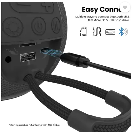 - At 330 grams the Bluetooth speaker with FM is super portable, you can take it to your friend’s place or can listen to your favorite songs while working out indoors or listen to a podcast in your room.