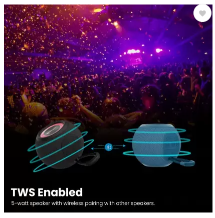 - The Mini speaker has a 5 watt crisp sound. With wire and wireless connectivity options like Bluetooth 5.3 , AUX 3.5mm and USB flash drive. The Bluetooth speaker has TWS connectivity that enables it to be connected wirelessly via Bluetooth to another Bluetooth speaker so that they can play the same song.