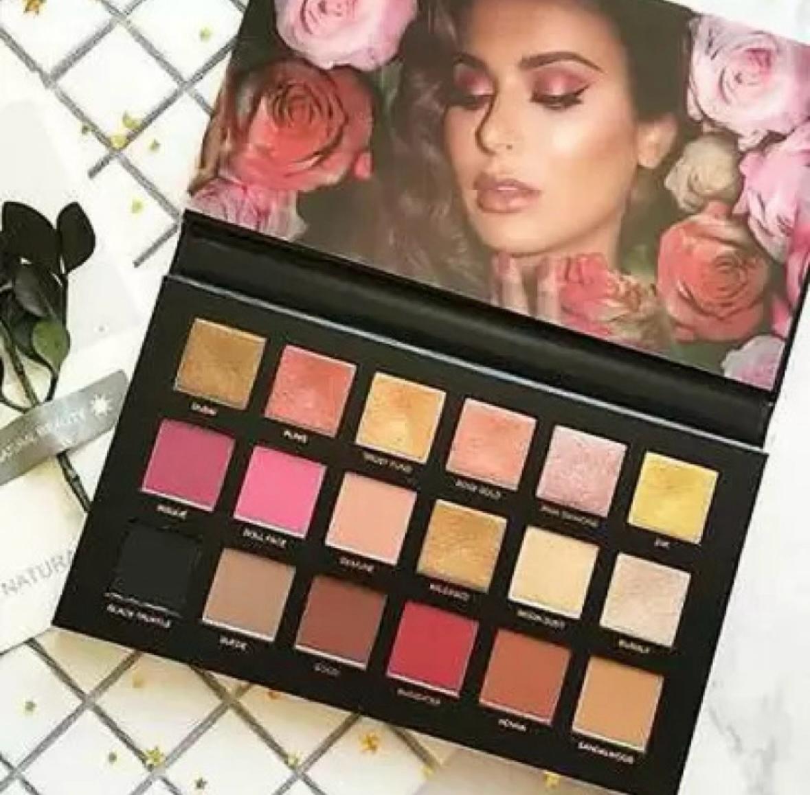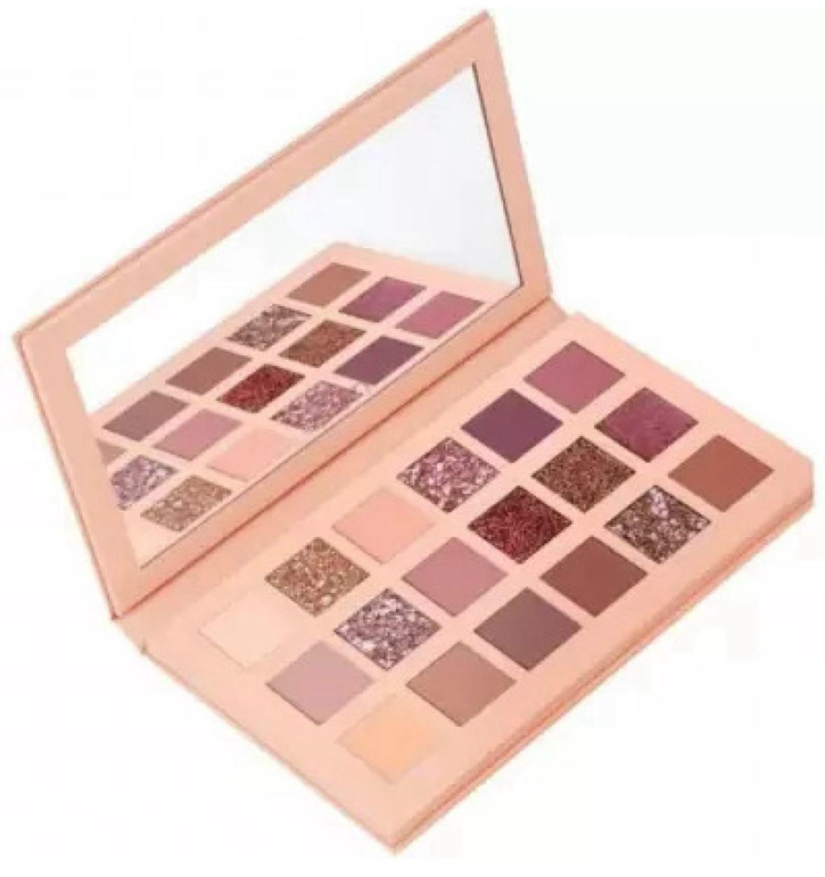 HUDA Nude & Rose Gold Eyeshadow palette is made from creamy high pigmented powder and combines 18+18 gorgeous shades in various textures. Smooth mattes, high pigmentation colors in vibrant purple and red, and soft earth nude tones shades. Beautiful shimmers, pressed pearls in plum, rose hues and bronze create a shimmering, velvety finish on top of mattes. It also has 1 golden metallic daring glitter for your bold eyes look.