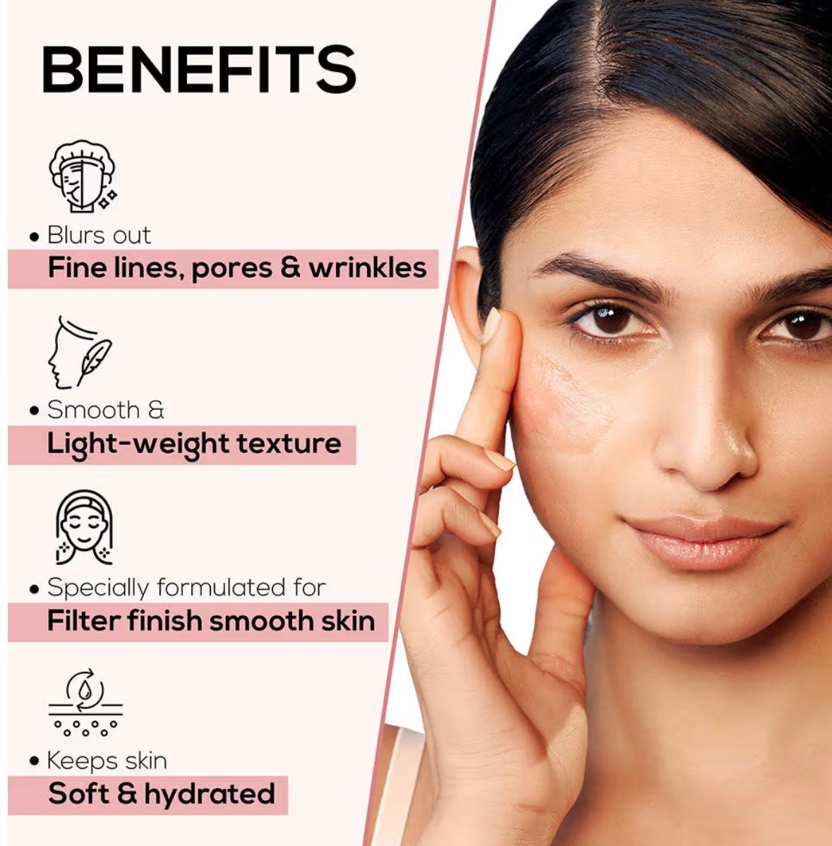 - Evens out & smoothens skin texture: RENEE Bollywood Filter fills-up fine lines, wrinkles and pores giving your skin a smooth and even-toned appearance which helps uniform application of makeup and helps it last long.
