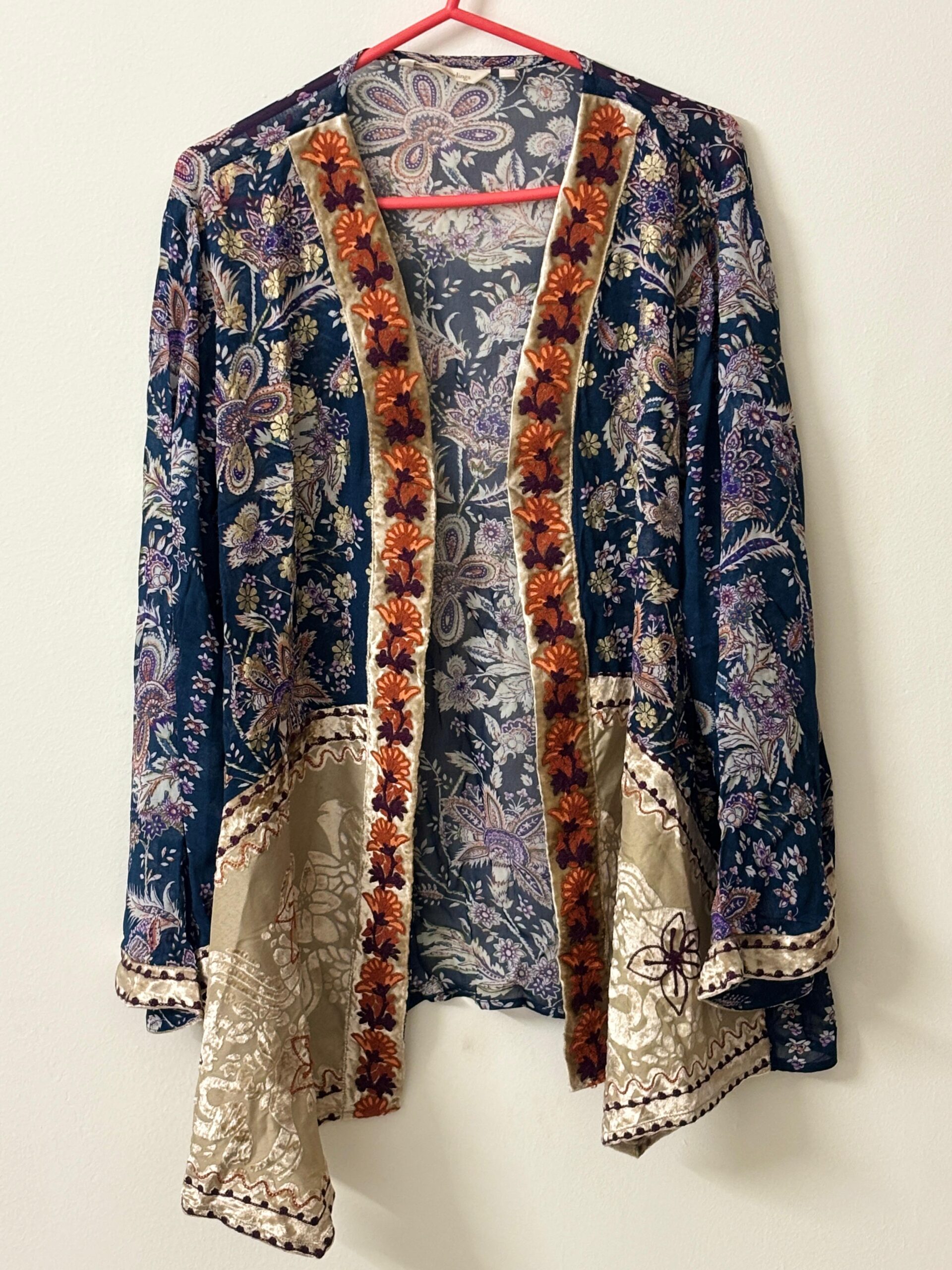 The very designer soft surrounding shrug in blue base with blend of authentic colors and embroidered front shrug brought to you by Congokart.