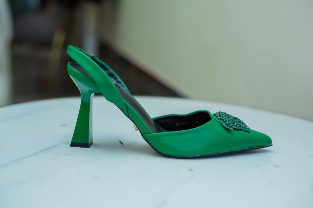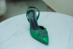 Very popular brand Versace flats in lovely green shade with the diamond brand logo of the same color.