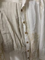 The ultra exclusive white & beige pure linen plazo pants with the hand thread embroidered shirt.