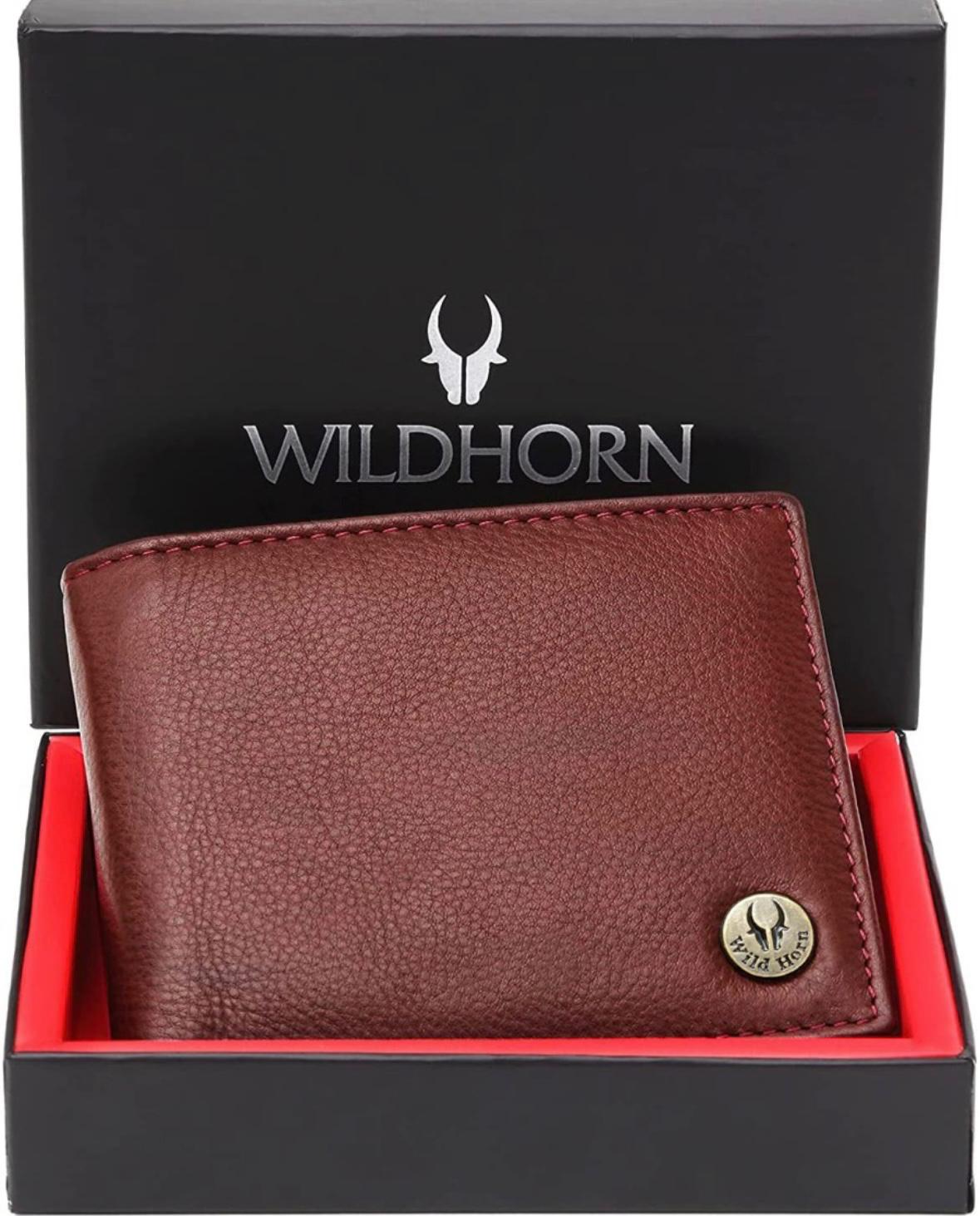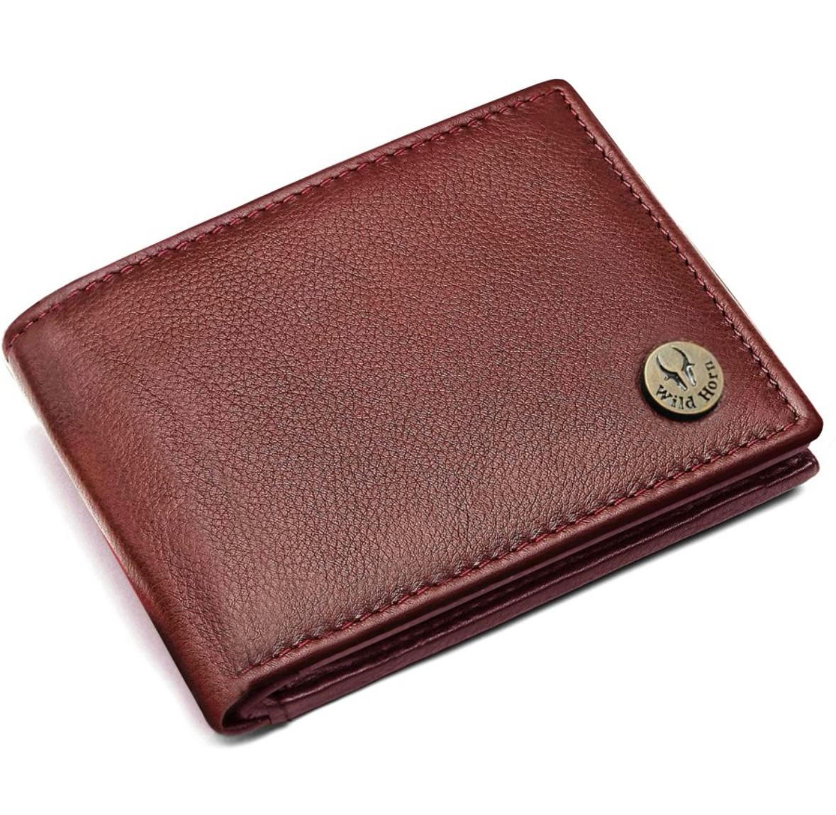 WILDHORN – Men Casual Maroon Brown Genuine Leather RFID Wallet (5 Card Slots)