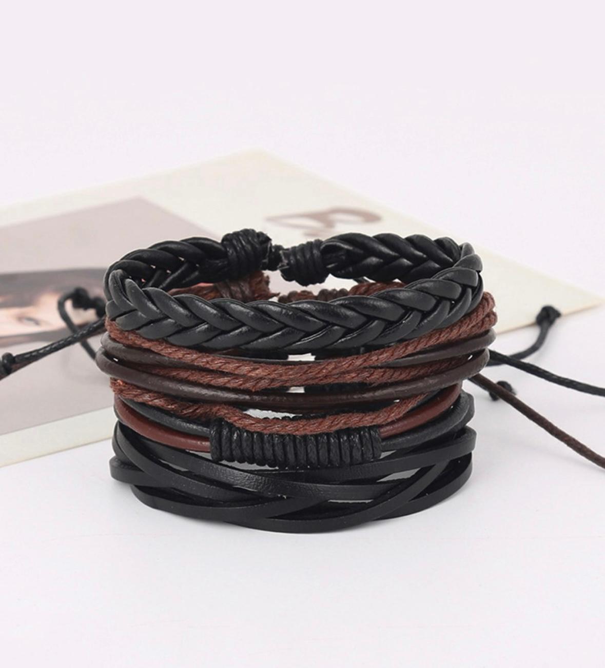 Yellow Chimes Leather Bracelet – Black & Brown